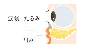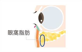 目の下の眼窩脂肪の絶対量が少なくなると、目の上の眼窩脂肪が下に落ち込むために起こります。