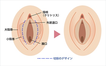 不潔になりやすかったり、不感症の原因にもなるので、小陰唇縮小術のついでにクリトリス包茎切除術を行うことで
